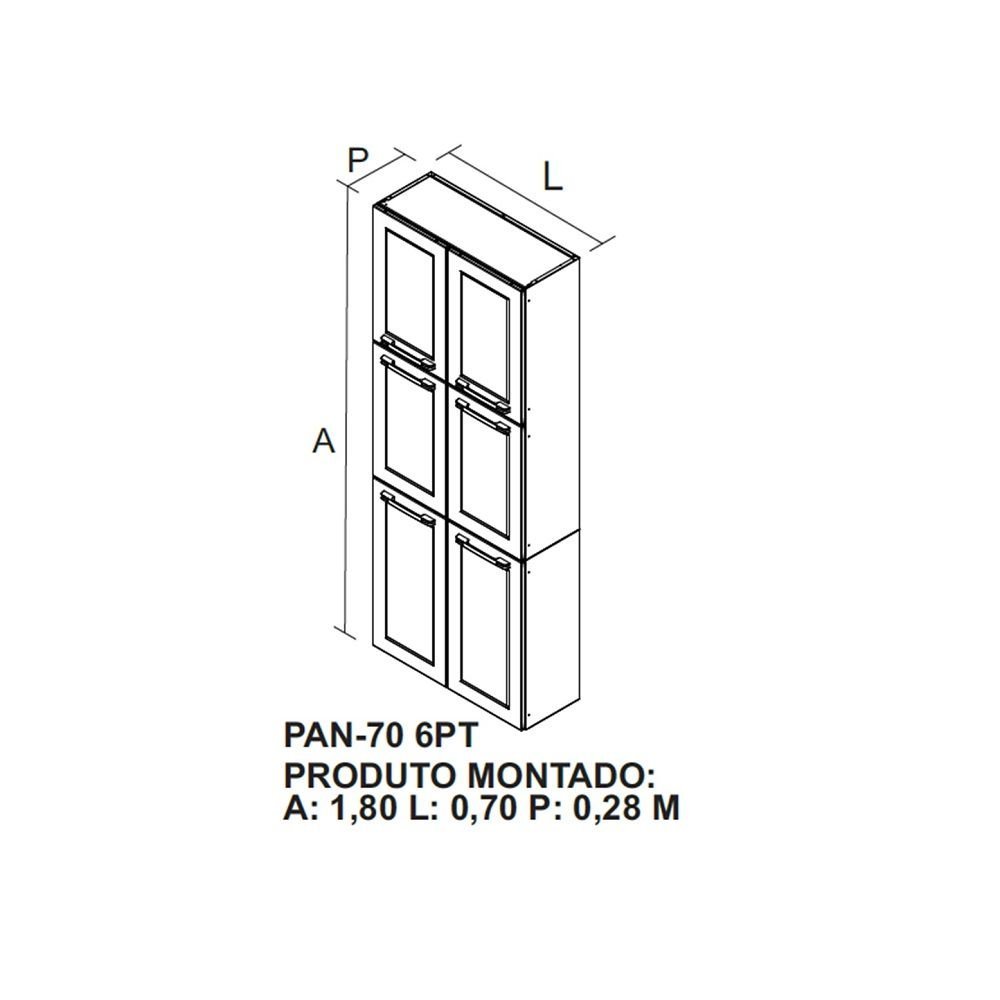 A linha Frorença tem o design das portas diferenciado, com linhas curvas modernas. O puxador grande em ABS com acabamento metalizado ônix interage com o estampo da porta, proporcionando robustez ao produto,é produzido com material de qualidade, visando durabilidade e resistência. Modernidade e beleza. Você organiza os utensílios domésticos, sem abrir mão de qualidade e bom gosto! Estilo: Americana Peso (kg): 24.85 Garantia: 12 Meses Altura (cm): 180 Acabamento: Pintura Largura (cm): 70 Possui Pés: Não Tipo de Porta: Bater Possui Gavetas: Não Suporta Até (kg): 60 Possui Espelhos: Não Profundidade (cm): 28 Escala de Brilho: Semi-Brilho Material da Porta: Aço Origem do Produto: Nacional Tipo de Paneleiro: Paneleiro Duplo Ambiente Principal: Cozinha Material Principal: Aço Acabamento da Porta: Pintura Sapatas Niveladoras: Não Material da Prateleira: Aço Acabamento da Prateleira: Pintura Tipo de Puxador da Porta: Externo Escala de Brilho da Porta: Semi-Brilho Peso Máximo por Prateleira: 10 Tipo de Armário de Cozinha: Paneleiro Acompanha Rodapé Decorativo: Não Material do Puxador da Porta: ABS Escala de Brilho da Prateleira: Semi-Brilho Tipo de Dobradiça/Corrediça da Porta: Simples Material da Dobradiça/Corrediça da Porta: Metálica Marca: Itatiaia Cor Interna: Branco Cor: Branco/Grafite Cor do Produto: Branco/Grafite Itens Inclusos: 01 Paneleiro + Manual de Montagem Cor Predominante: Cinza Linha ou Coleção: Florença - Itatiaia