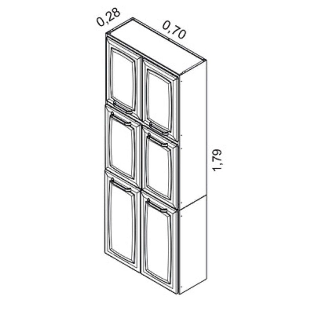 Paneleiro Itatiaia luce 2018 ipldv-70 mx, com 6 portas, resistência e a beleza a favor da funcionalidade, mais facilidade e suavidade na abertura das portas, pintura eletrostática a pó que garante maior durabilidade ao produto, ampla espaço interno com prateleiras bem divididas, altura com 1,79 cm. Estilo: Clássico Modular: Sim Peso (kg): 24 Garantia: 12 Meses Altura (cm): 179 Acabamento: Pintura Largura (cm): 70 Possui Pés: Não Tipo de Porta: Bater Possui Gavetas: Não Suporta Até (kg): 60 Possui Espelhos: Não Profundidade (cm): 28 Escala de Brilho: Semi-Brilho Material da Porta: Aço Origem do Produto: Nacional Tipo de Paneleiro: Paneleiro Duplo Ambiente Principal: Cozinha Material Principal: Aço Acabamento da Porta: Pintura Material do Puxador: Alumínio Sapatas Niveladoras: Não Material da Dobradiça: Metalica Material da Prateleira: Aço Acabamento da Prateleira: Pintura Tipo de Puxador da Porta: Externo Escala de Brilho da Porta: Semi-Brilho Peso Máximo por Prateleira: 15 Tipo de Armário de Cozinha: Paneleiro Material do Puxador da Porta: Alumínio Material do Puxador da Gaveta: Alumínio Escala de Brilho da Prateleira: Semi-Brilho Tipo de Dobradiça/Corrediça da Porta: Simples Material da Dobradiça/Corrediça da Porta: Metálica Marca: Itatiaia Tonalidade: Branco Cor Interna: Branco Cor do Produto: Branco Itens Inclusos: um paneleiro Cor Predominante: Branco Linha ou Coleção: Luce - Itatiaia