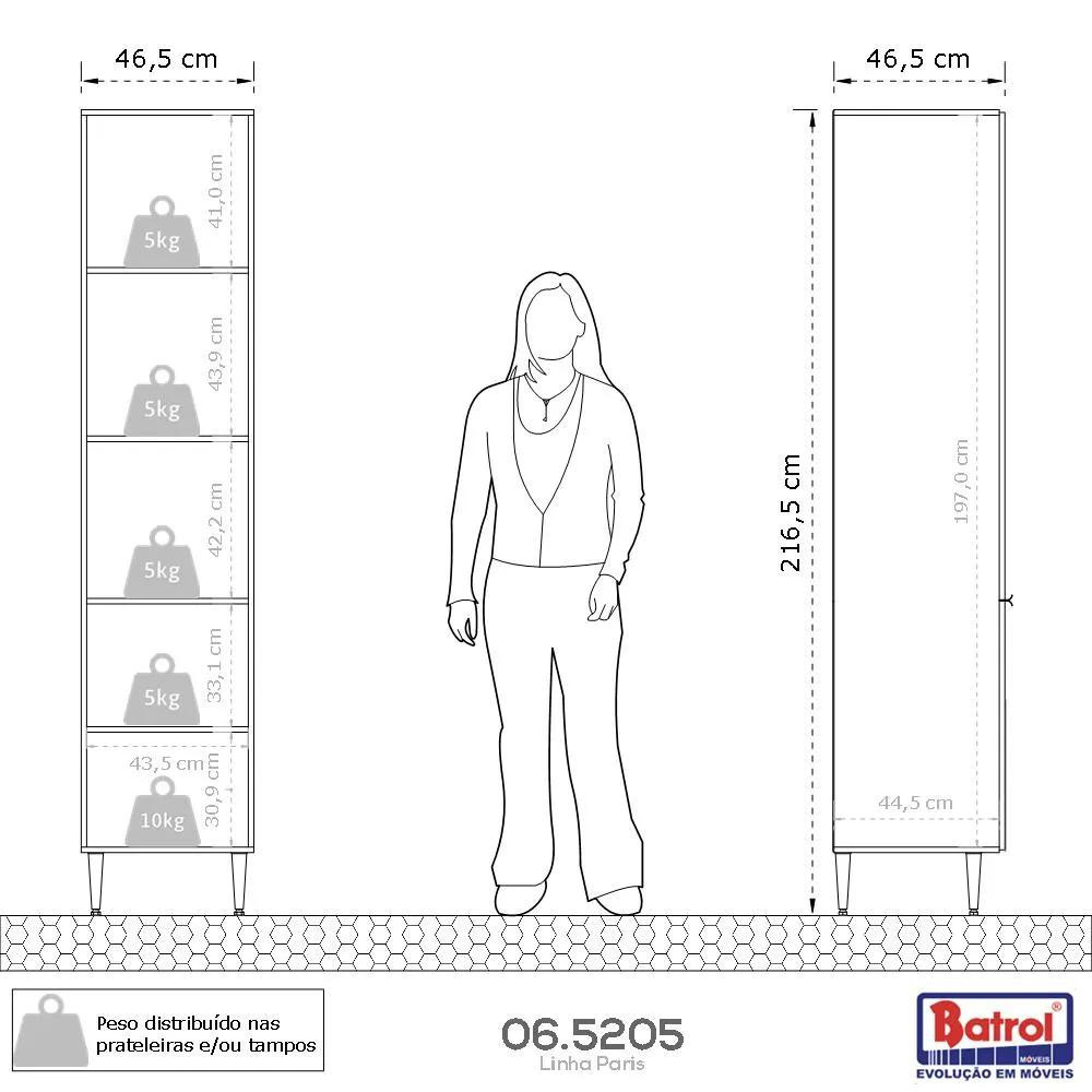 Ideal para o armazenamento de diversos utensílios, o Paneleiro de Cozinha Confort da Batrol vai ficar perfeito e super útil na sua cozinha! Dimensões: Altura (com pés): 216 cm | Largura: 46 cm | Profundidade: 46 cm Características: - Estrutura em MDP 15 mm - Puxadores em alumínio - Dobradiça Slow 35 mm - 04 Pés de plástico com 16 cm - Acabamento de Pintura: Fosco (nas duas cores) - Suporte de peso da prateleira inferior: 10 kg - Suporte de peso das outras prateleiras: 5 kg - Garantia de 12 meses ** Imagens ilustrativas. Objetos não acompanham o produto. ** O produto é enviado desmontado. AVISO: Esclarecemos que a Opção Móveis se responsabilizará pela entrega dos produtos adquiridos até a porta de entrada ou portaria do endereço indicado, ou seja: é de total responsabilidade do cliente a montagem, desmontagem e instalação do produto adquirido. Para evitar futuros desagrados ou imprevistos com a entrega, também é necessário que o cliente confira as dimensões do produto escolhido, antes de finalizar a compra, devendo certificar-se de que a mercadoria passará normalmente por elevador, porta, escada e corredor.