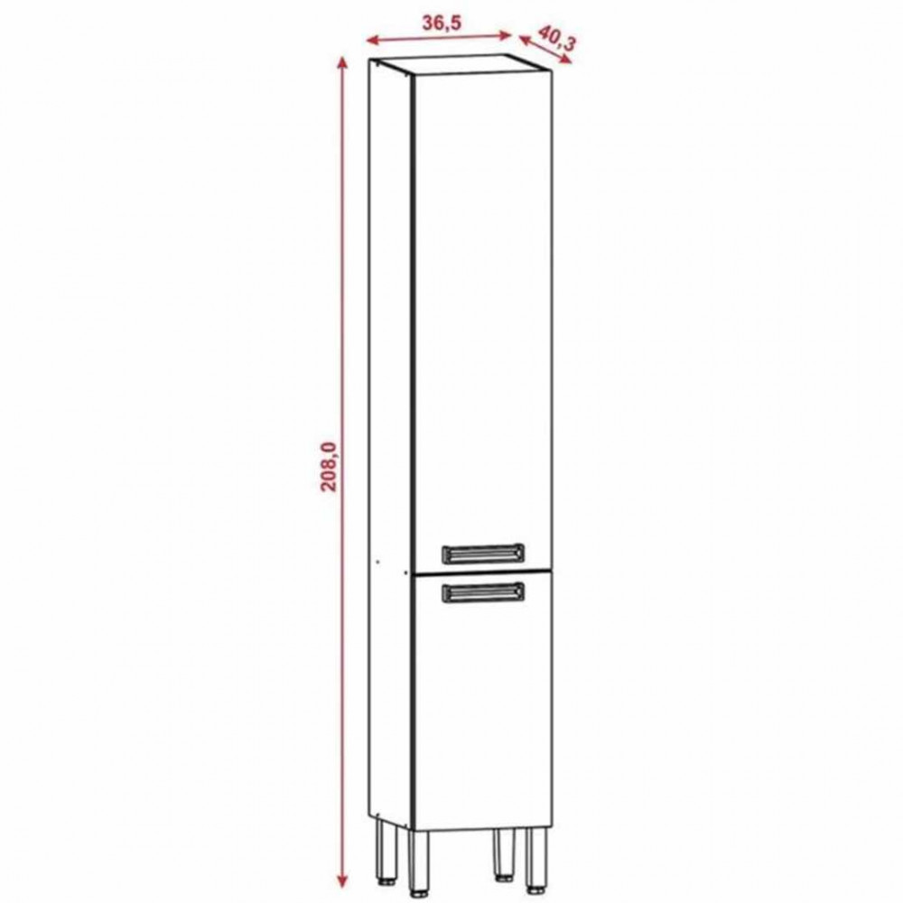 O Paneleiro simples 2 Portas Ametista complementa a linha Ametista. Produzido em MDP de 15 mm, madeira reconstituída provinda de reservas manejadas para este fim, é um produto ecologicamente correto. Nas duas portas são utilizadas dobradiças 100 metálicas que garantem segurança no abrir e fechar das portas. Dispõe de prateleiras para melhor organizar os objetos da cozinha. Os puxadores são ergonômicos em plástico resistente com acabamento cromado. Em sua base utiliza-se quatro pés reguláveis em plástico resistente que propicia perfeita montagem mesmo em pisos com pequenos desníveis. O acabamento é em pintura fosca com aplicação de textura sensível ao toque. Modelo:Paraná Características: Produzido com MDP de 15 mm dobradiças 100 metálicas Puxadores ergonômicos em plástico Resistente com acabamento cromado Duas portas Pés reguláveis em plástico resistente (poliestireno). Dimensões Altura: 208 cm Largura: 36,5 cm Profundidade: 40,3 cm Peso: 31,45 Kg Garantia: 3 meses