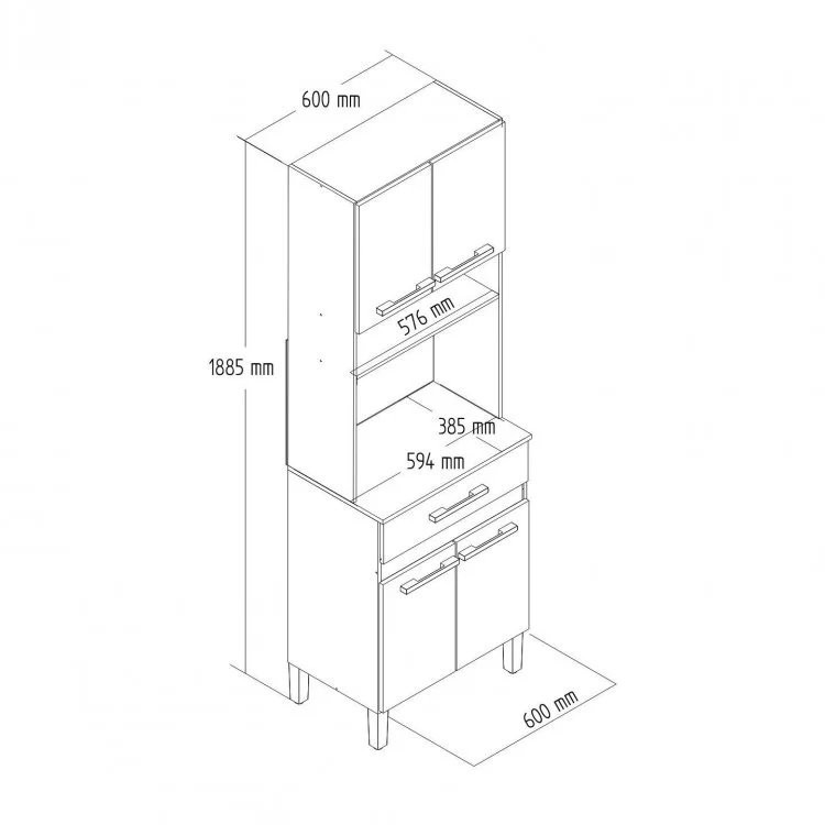 Paneleiro Torre Quente 4 Portas 1 Gaveta Compacta