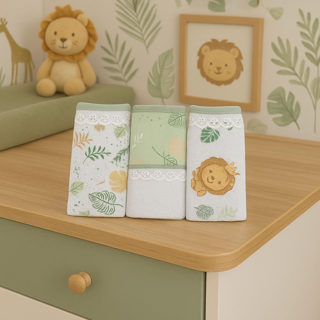 Pano de Boca Dengo Felpa Estampa Leão 03 Peças