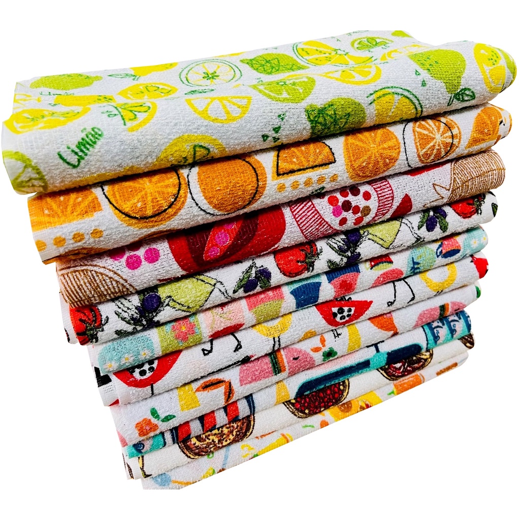 Panos Atoalhados super absorvente. Pano de Prato atoalhado de alta qualidade, pré lavado, estampas alegres e diversas, não soltam fiapos, não encolhem, e o principal secam a louça, não deixe de adquirir. Contém: 5 unidades Estampas: Sortidas Especificações: Alta gramatura, bainha laterais, anti mancha. Tecido: 100% algodão tecido anti-mancha, estampas exclusivas. Medidas: 35 cm largura x 55 cm altura. Marca: Camesa LAVAGEM: Podem ser lavados em água sanitária