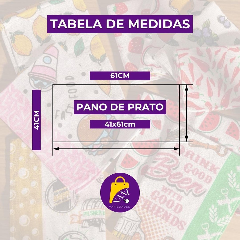 Pano de Prato Atoalhado Estampado Guardanapo Copa Felpudo Pia Louça Kits ENVIO IMEDIATO! COMPRA SEGURA COM GARANTIA SHOPEE ✅ ATENÇÃO: Escolha a quantidade desejada na variação. KIT COM 7 OU 4 UNIDADES OBS: ENVIADO DE FORMA SORTIDA CONFORME DISPONIBILIDADE DO ESTOQUE Peso: 60g Gramatura: 240g/m² Medida: 41x61 cm Tecido: Fio 12/1 (Atoalhado/Felpudo) Composição: 100% Algodão Obs: Indicamos sempre lavar antes de usar, para melhor secagem. Atenção: Nossas toalhas são produzidas em remessas, podendo sofrer variação no tamanho e gramatura. Seja bem vindo a Vani Variedades!