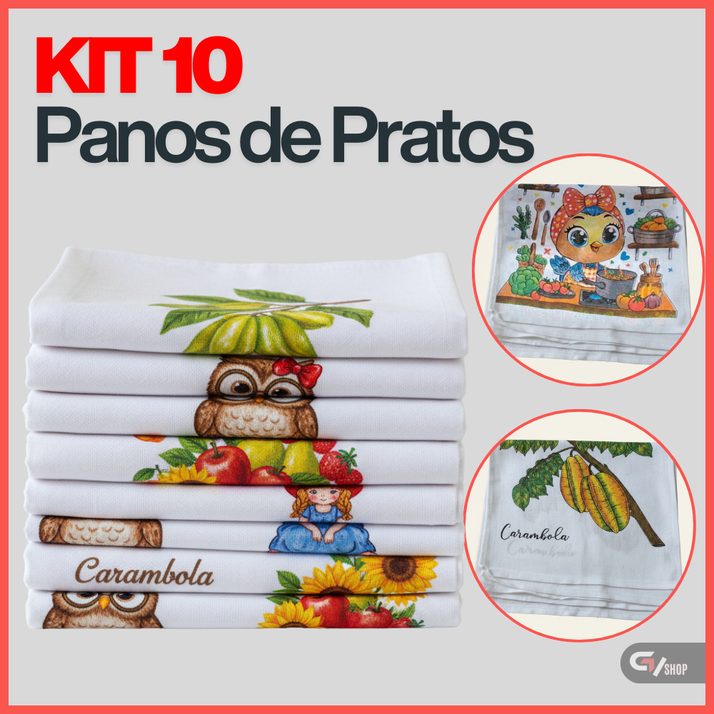Pano De Prato Estampado Bainha Kit Com 10 Peças