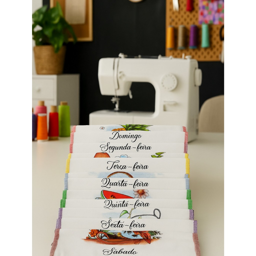 | Pano de Prato Estampado KIT Semaninha Dias da Semana Pé de Galinha ... este produto | R$ 24,39 | 62% | 4.9/5 | — |
