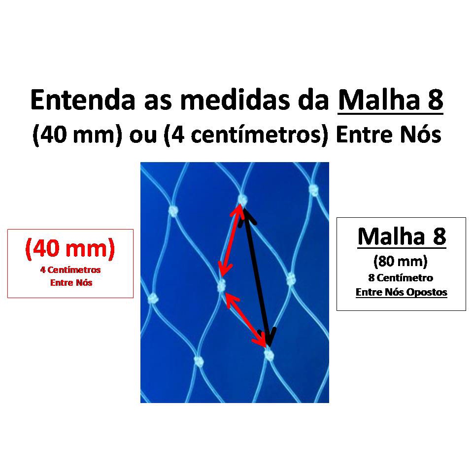 Esta é uma Malha 8 (40mm) são 40mm ou 4 centímetros entre nós e a Malha inteira esticada tem 8 centímetros! Panagem de Rede Malha 8 = ( 0,35x40x48x100 ) Fio 0,35 mm 40 mm entre Nós ( 4 Centímetros entre Nós ) = Malha 8 48 Malhas de Altura X 8 = ( 3,84 Metros de Altura ) 100 Metros de Comprimento ( 1.250 Malhas no Comprimento ) X 8 = 100 Qualidade Superior! Fabricadas com ourela dupla, são uma opção mais acessível, com alto padrão de qualidade! REDE OU PANAGEM, EM ALGUMAS REGIÕES SE USA TERMOS DIFERENTES AO SE REFERIR AO TAMANHO DA MALHA EM UMA DAS FOTOS DO ANUNCIO TEM AS MEDIDAS REFERENTE AO "" TAMANHO DA MALHA "" OBRIGADO POR VISITAR NOSSOS ANÚNCIOS! DESDE JÁ, AGUARDAMOS SUA COMPRA! OBRIGADO!!!