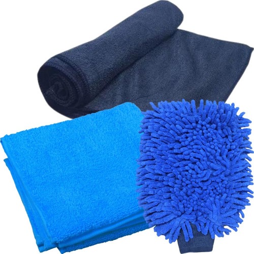 Pano Multiuso 220gsm + Toalha De Secagem + Luva Microfibra