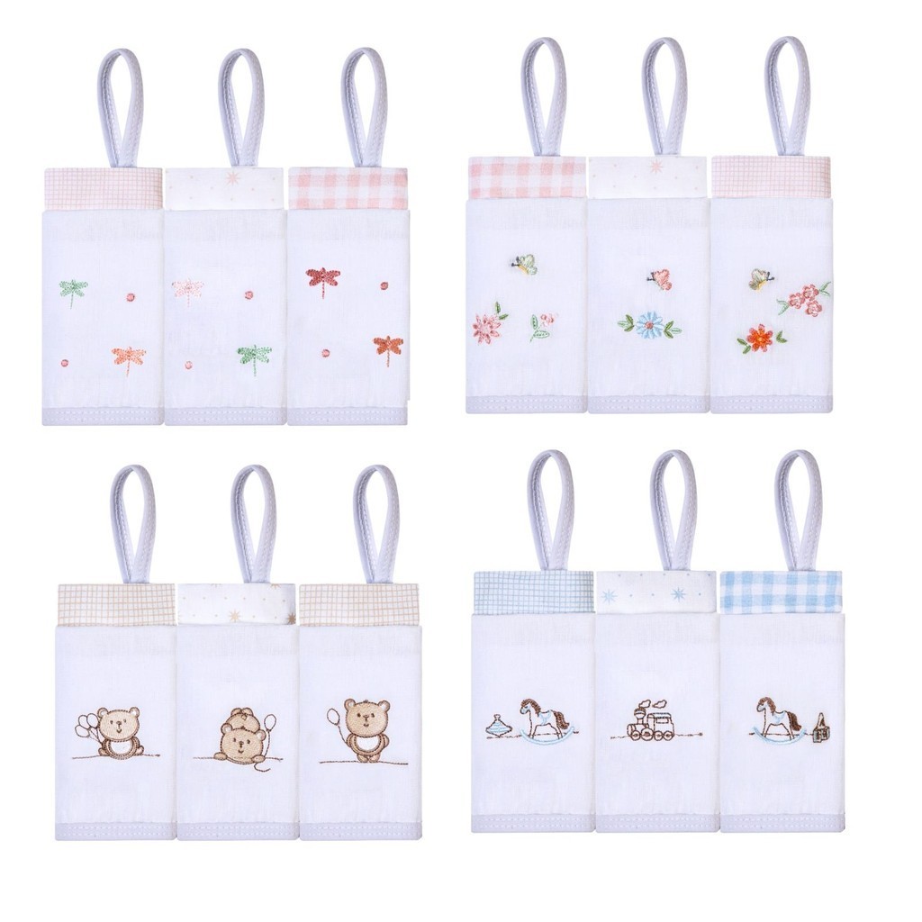 Pano Paninho de boca Bebê Bordado Prendedor de chupeta 40x40cm 100% Algodão c/ 3 unidades