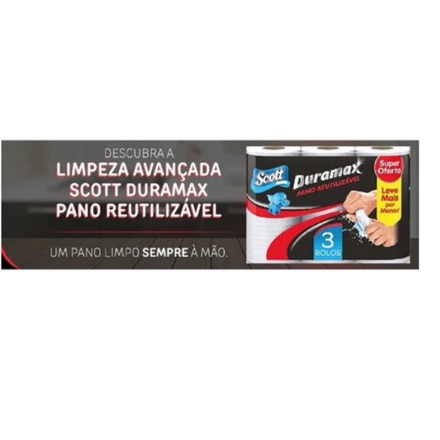 Pano Multiuso Duramax Scott – 3 Rolos com 58 Folhas Cada O Pano Multiuso Duramax Scott é a solução ideal para quem busca praticidade, higiene e eficiência na limpeza diária. Desenvolvido com alta tecnologia, é um pano semi descartável, reutilizável e lavável, oferecendo máxima resistência e absorção. Sua composição permite secagem até duas vezes mais rápida do que panos comuns, além de não soltar fiapos e facilitar a remoção da sujeira em diversas superfícies, tornando a limpeza mais ágil e eficaz. Características do Produto: Pano multiuso reutilizável e lavável Mais resistente e absorvente que papel toalha Secagem rápida Não solta fiapos Prático, higiênico e econômico Ideal para limpeza doméstica e profissional Conteúdo da Embalagem: 3 rolos 58 folhas por rolo Dimensões de cada pano: 20,1 cm x 21,5 cm Palavras-chave (Shopee): Pano Multiuso, Duramax Scott, Pano de Limpeza, Pano Reutilizável, Pano Lavável, Limpeza Doméstica, Limpeza de Superfícies, Pano Absorvente, Pano que Não Solta Fiapo, Produtos de Limpeza