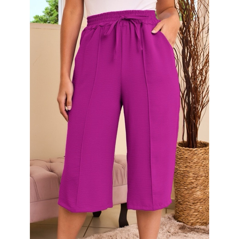 PANTACOUR Feminino Liso Tecido Duna Calça Com Bolso até Canela Verão