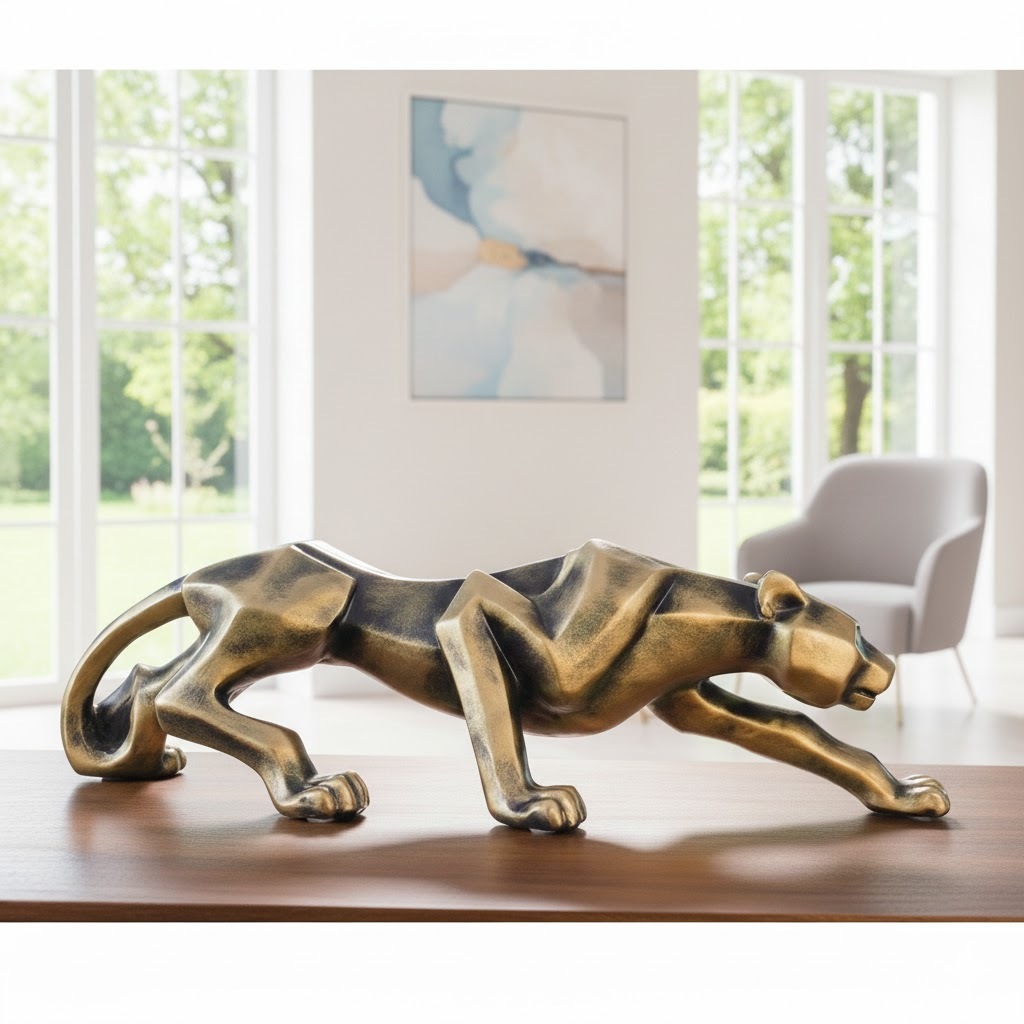 Pantera Ataque G Envelhecida 65CM Decoração Peça de Luxo Sala Escritório Feita No Brasil