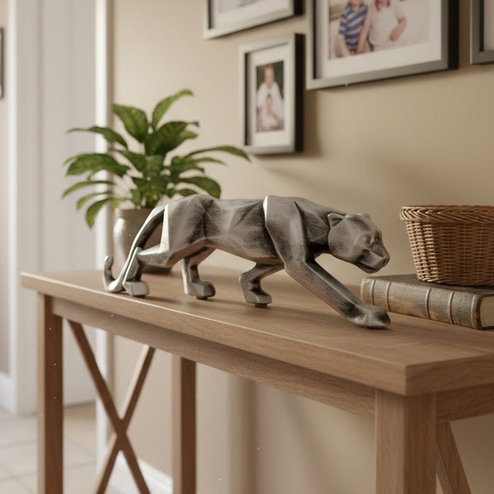 Pantera Geométrica Envelhecido Prata, Decoração elegante Luxo Sala Escritório (envio imediato)