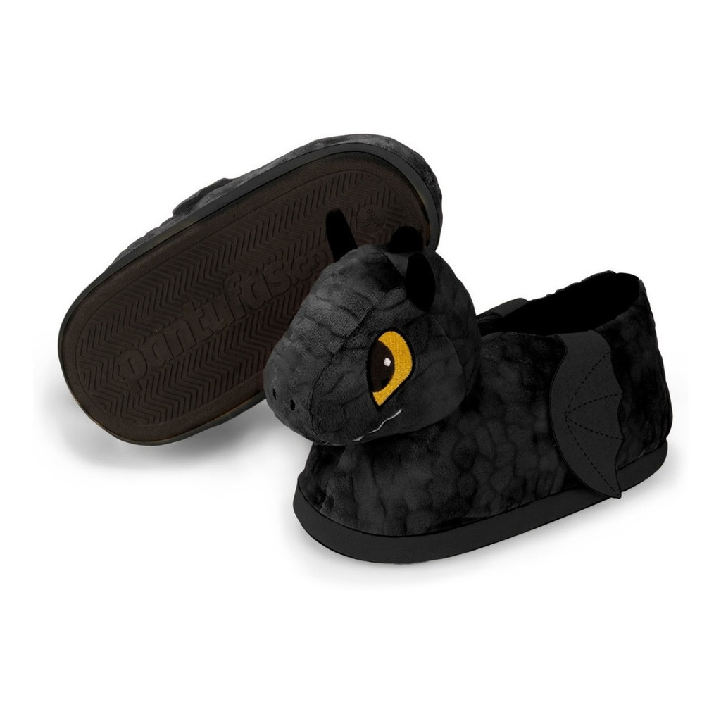 Pantufa 3D Dragão Preto Banguela Tam 39/41