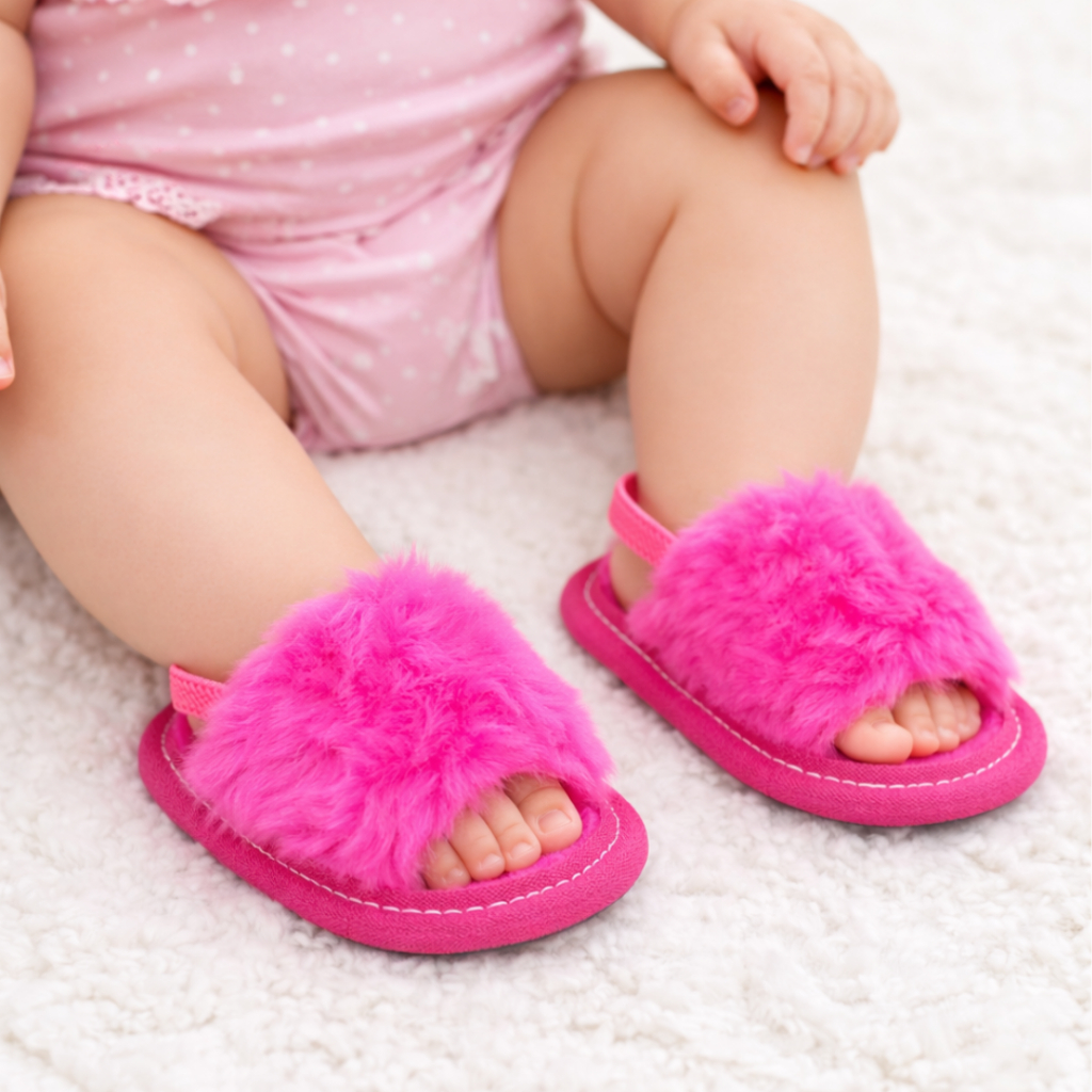 Pantufa Bebê Menina de Pelúcia solado em Eva antiderrapante (Auxilia primeiros passos)