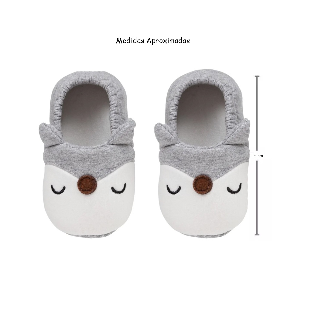 Pantufa Bebê Raposa Cinza Antiderrapante - Buba
