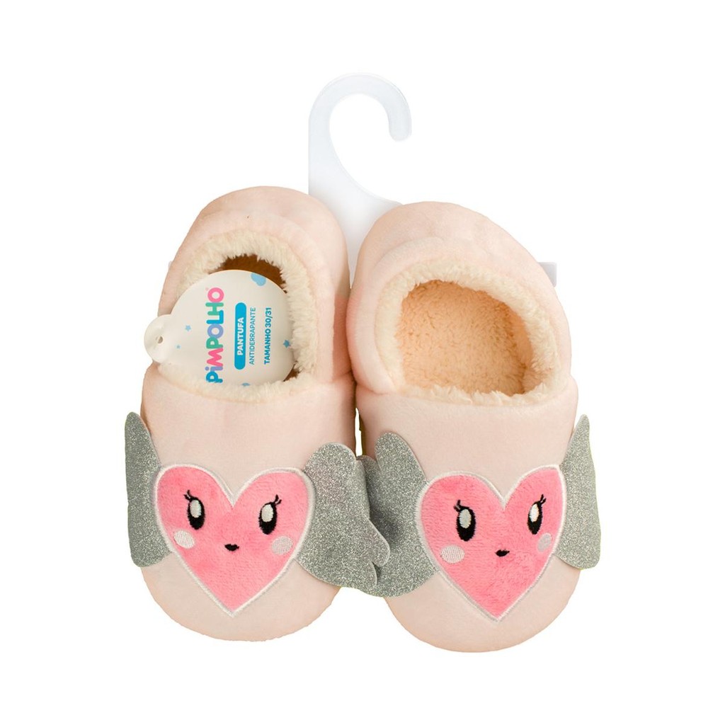 Pantufa Infantil Antiderrapante Pelúcia Coração Pimpolho