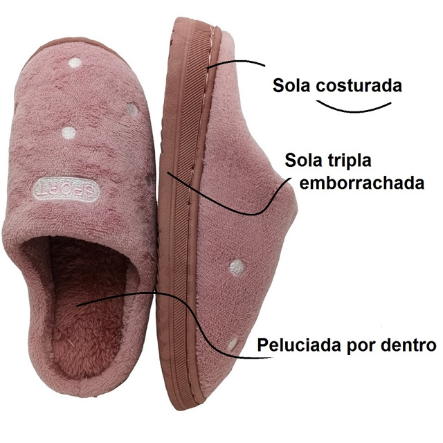 Pantufa Inverno Solado Emaborrachado Triplo Peluciada Feminino Antiderrapante