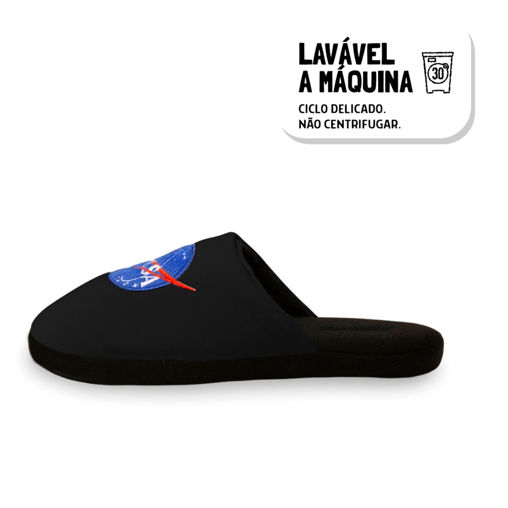 Pantufas Chinelo Preto Nasa Com Solado De Borracha Antiderrapante Adulto E Infantil Unissex