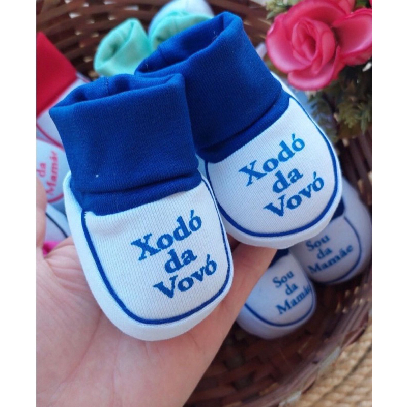 Pantufas de bebê com frases sou da mamãe/sou do papai- Recém Nascido 100% algodão