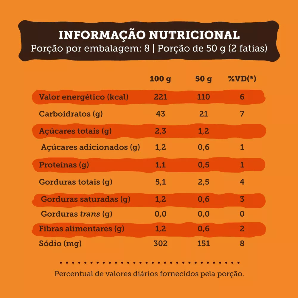 INFORMAÇÕES DE DESTAQUE Pão de Forma de Mandioquinha com Cenoura; Livre de glúten, leite e lactose; Textura macia e sabor autêntico. DESCRIÇÃO O Pão de Mandioquinha com Cenoura é uma deliciosa opção para quem busca uma alimentação inclusiva e saborosa. Livre de glúten, leite e lactose, foi desenvolvido especialmente para atender às necessidades de celíacos e pessoas com intolerâncias alimentares, sem abrir mão da qualidade e do sabor. Com uma textura macia e um sabor diferenciado, é ideal para momentos de refeição ou lanche, oferecendo uma experiência gastronômica que combina nutrição e prazer. Cada fatia reflete o compromisso com a qualidade e a dedicação em proporcionar alimentos seguros e deliciosos. INGREDIENTES Amido de milho, amido modificado de mandioca, óleo vegetal, farinha de mandioquinha, farinha de cenoura, açúcar, gema, sal, conservadores (propionato de cálcio e ácido sórbico), estabilizantes (hidroxipropilmetilcelulose e goma xantana), emulsificante (mono e diglicerídeo de ácidos graxos). ALERGÊNICOS:Contém ovo e seus derivados, pode conter soja e derivados, castanha de caju e amêndoas. NÃO CONTÉM GLÚTEN. DICAS DE CONSUMO Aqueça na torradeira ou frigideira para realçar o sabor e a textura. Experimente com geleias, pastas ou recheios salgados, como queijos sem lactose e saladas, para uma refeição versátil e saborosa.