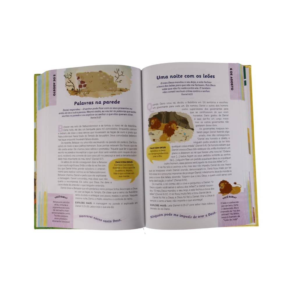 Por que ler o devocional? Este devocional é indispensável para famílias que desejam introduzir a fé cristã de maneira consistente e inspiradora na rotina infantil. Com 366 leituras, proporciona um plano anual de discipulado bíblico adaptado ao universo das crianças, despertando nelas o amor pela Palavra de Deus. Sinopse Pão Diário Kids – 366 Devocionais de Gênesis a Apocalipse é um devocional envolvente que apresenta a história da redenção de maneira acessível e divertida para o público infantil. A cada dia, as crianças são convidadas a explorar um trecho da Bíblia, refletir sobre seu significado, orar com sinceridade e descobrir curiosidades sobre o mundo bíblico e a criação. Com linguagem simples, textos bíblicos na versão NTLH, e ilustrações vibrantes, este devocional revela como Jesus está presente em toda a narrativa bíblica ― desde a Criação até a Redenção ― e como o Espírito Santo guia cada criança em sua jornada diária de fé. Faixa etária: 5 a 10 anos Público-alvo: Crianças, pais, professores de escola bíblica infantil Resenha Este devocional diário é uma ferramenta preciosa para o desenvolvimento espiritual infantil. Com uma proposta clara de apresentar toda a narrativa das Escrituras ao longo de um ano, ele guia os pequenos leitores a compreenderem o amor e o plano redentor de Deus de forma progressiva, envolvente e relevante. Ao integrar textos bíblicos, aplicações práticas, sugestões de oração e curiosidades, o Pão Diário Kids estimula uma fé sólida e ativa desde cedo, promovendo momentos significativos entre pais e filhos e fortalecendo a identidade cristã da criança. 15x22cm 384 Páginas