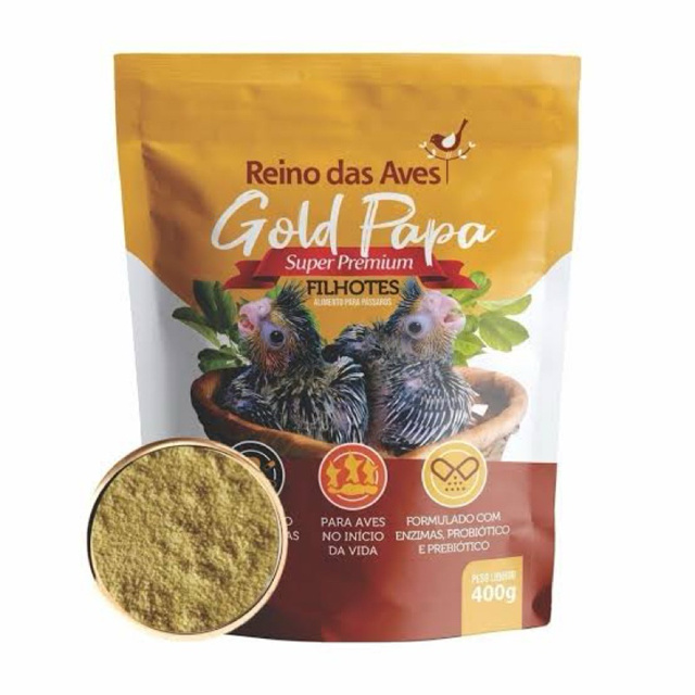 papa para pássaros filhotes gold reino das aves 400g + Brinde