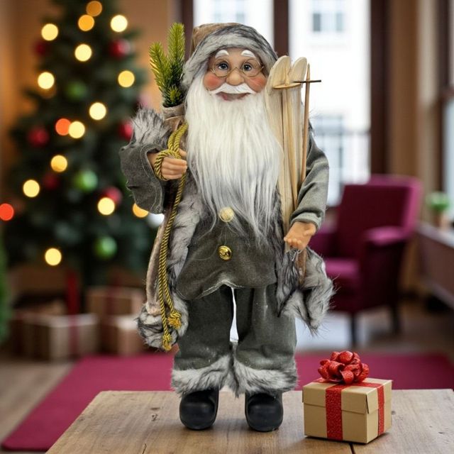 Papai Noel Decorativo em Pé com Saco de Presentes - Verde e Branco - 45cm - 1 unidade - Rizzo