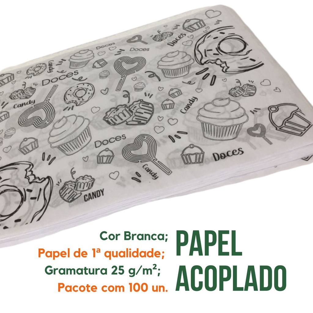 Papel Acoplado Doces com 100 un Tam 38x30 cm Embalagem Para Confeiraria Película Resistente