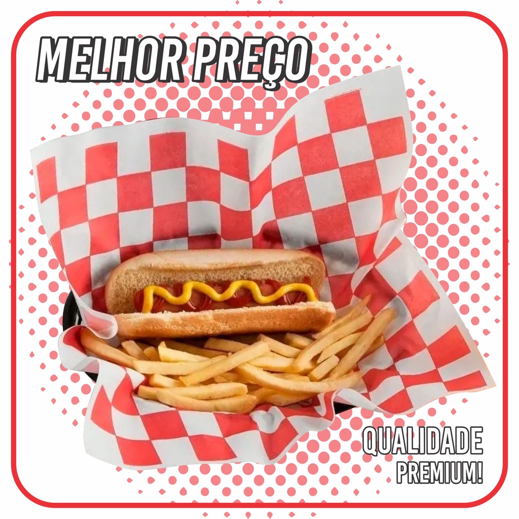 PAPEL ACOPLADO 25g PARA ALÍMENTOS, 1000 UNIDADES - EMBALAGEM P/ ALÍMENTOS(CAIXAS COM TOTAL DE 1000 UNIDADES) Dimensões:Altura: 30 cmLargura: 38 cmGramatura = 25g O papel acoplado é ideal para manter frescor aos alimentos, proteger eles deixando-os sempre saborosos e de forma agradável. É um material bonito e perfeito para embalar seu alimento, como um lanche comum, hambúrguer, frios, doces, qualquer tipo de alimento, pois com um padrão versátil quadriculado vermelho, te possibilita a utilizar o material para todos produtos possíveis. • O desenho pode ser embalado de forma simples, com um desenho abstrato você não precisa se preocupar em ajustar perfeitamente o alimento no centro.• Impressão de alta qualidade Flexográfica.• Possui Película protetora que retém a gordura, molhos, humidade do alímento.• Melhor Qualidade de impressão, e material de espessura ideal.• Melhor Custo Benefício. Especificações sobre o Produto: • Papel Acoplado 25g - Papel com espessura ideal para embrulhar lanches, frios, doces, qualquer tipo de alímento, e fornece firmeza e segurança para seu produto embalado.• Plástico Polietileno - Material próprio para contato direto com o alimento, retém a gordura. • Certificações e Aprovações de Qualidade de Produto:FISPQ, FLEXOINK IND E COM DE TINTAS LTDA, TINN-KOL TINTAS E ADESIVOS LTDA, LUTEPEL INDUSTRIA E COMERCIO DE PAPEL LTDA, Certificado FSC, IPT, TECAM,BCQ, TECPAR e ADOLFO LUTZ. * ENTREGAMOS PARA TODO BRASIL! * Não conseguimos criar anúncios de kits, não personalizamos o produto com a marca ou arte do cliente.Confira outros itens de nossa loja, todos relacionados a linha de papel e embalagem! Faltou Alguma informação? Pergunte-nos! Ficaremos Felizes em ajudar.