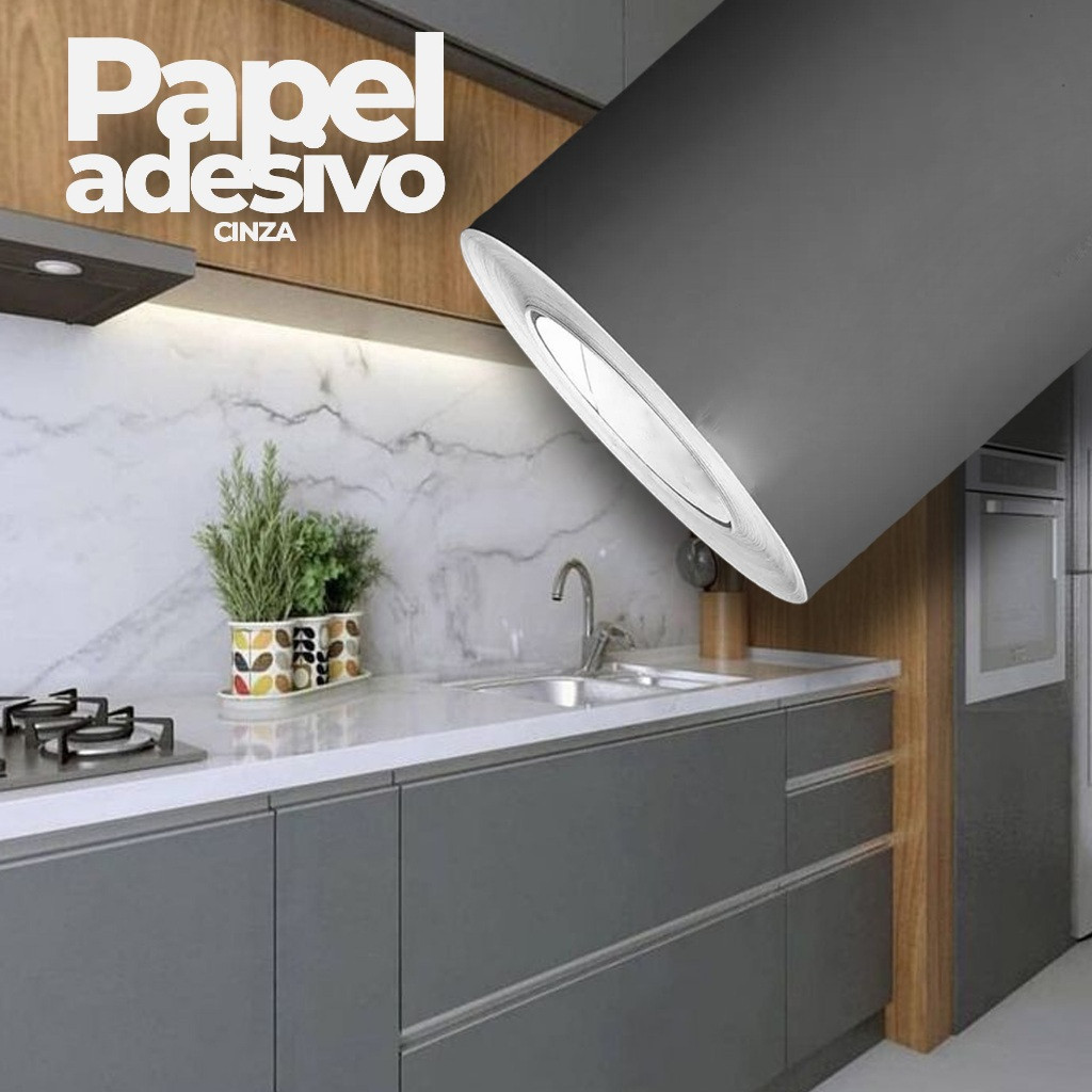 Papel Adesivo 5 Metros Cinza, Liso, Opaco, Para Decoração, Envelopamento