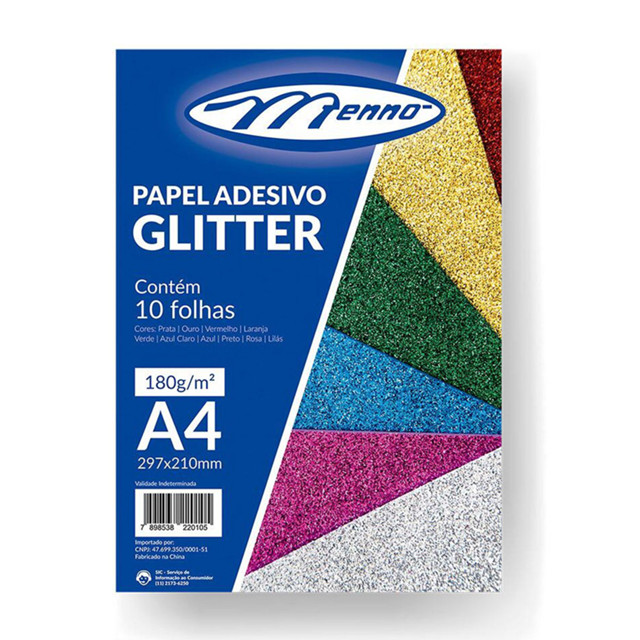 Papel adesivo glitter A4 180g pacote com 10 folhas Menno