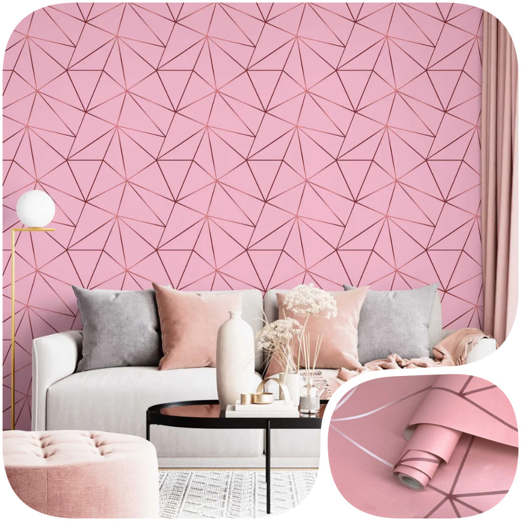 Papel Adesivo Rose Gold 3D Auto Adesivo Modelo Zara Geométrico Rolo de 5m x 45cm