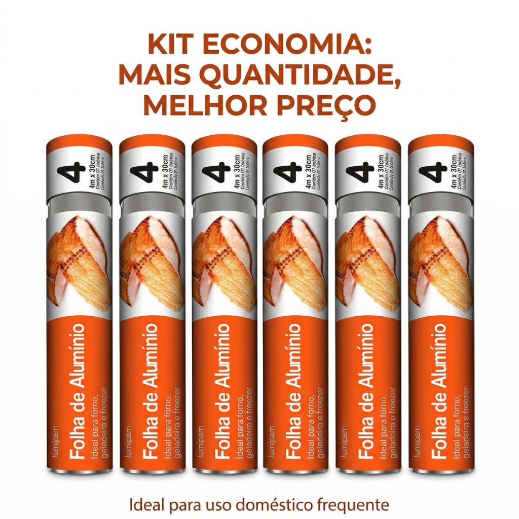 Papel Alumínio 30cm 4m 6 Unidades Cozinha Assar Embalar Alimentos Lumipam