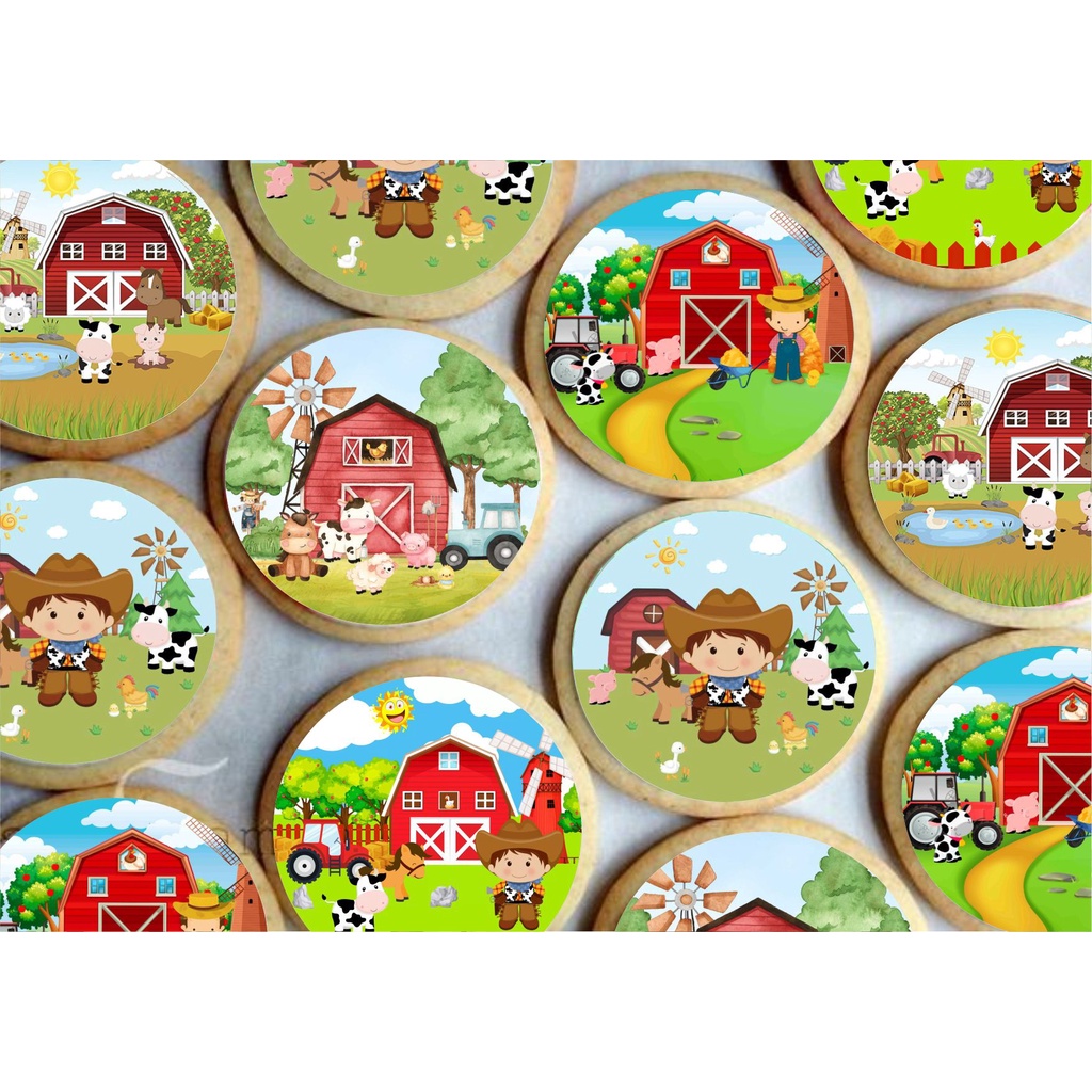 Papel arroz CORTADO para Pirulito ou Cupcake ou Bolacha ou Chocolate 5cm com 20 imagens por folha - Fazendinha
