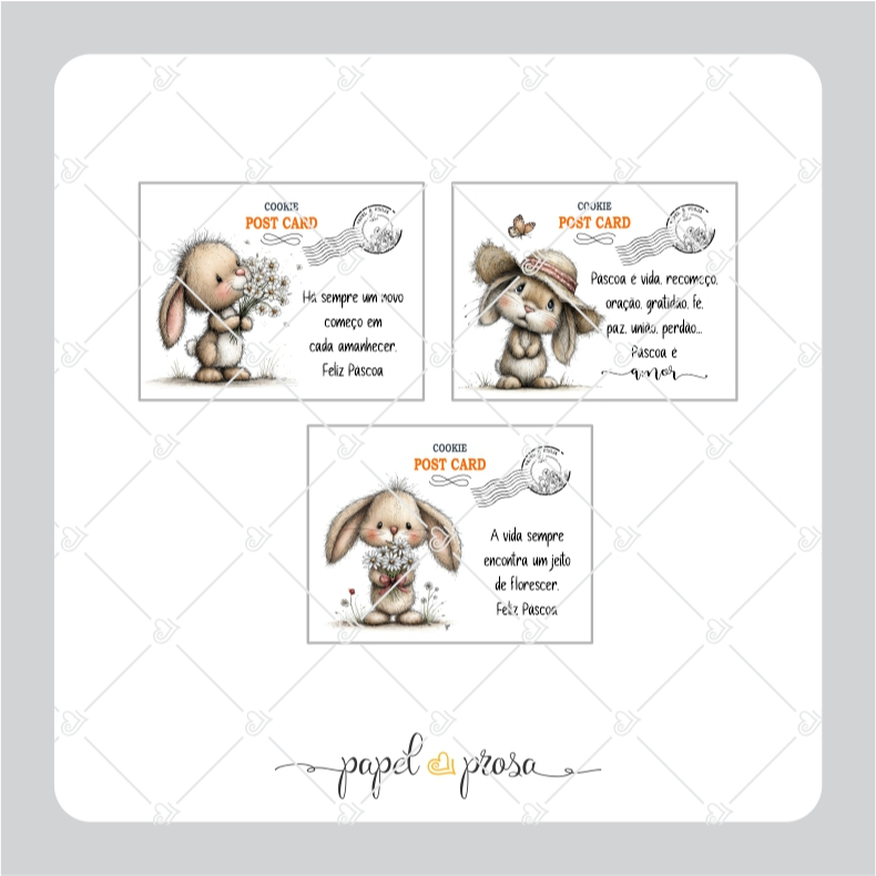 Papel Arroz Páscoa Postal Fofura - Folha A4 - com 9 imagens - Bolacha - Biscoito #Papel e Prosa