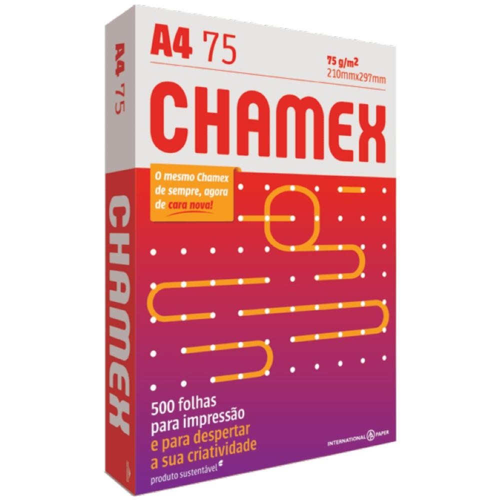 Papel Chamex A4 75g Branco C/ 500 Folhas 10 Pacotes O Papel Chamex A4 75g é a escolha ideal para quem busca qualidade, eficiência e confiabilidade em impressões de alta velocidade. Com a melhor performance em equipamentos modernos, ele é perfeito para escritórios, empresas e uso doméstico, atendendo a todas as suas necessidades de impressão de documentos, relatórios e mais. Totalizando 5000 folhas de papel, garantindo uma excelente relação custo-benefício. Características principais: Tamanho A4 (210x297mm): O formato padrão A4 é ideal para uma vasta gama de impressões, como relatórios, documentos, cartas e apresentações, oferecendo versatilidade para o dia a dia. Alta Performance em Impressoras de Alta Velocidade: Desenvolvido para proporcionar resultados rápidos e de alta qualidade, o papel Chamex A4 é perfeito para impressoras a laser e jato de tinta, especialmente em ambientes com grande volume de impressão. Total de 5000 Folhas (10x500): O pacote econômico de 10 resmas de 500 folhas cada é ideal para atender a grandes volumes de impressão, proporcionando praticidade e economia.