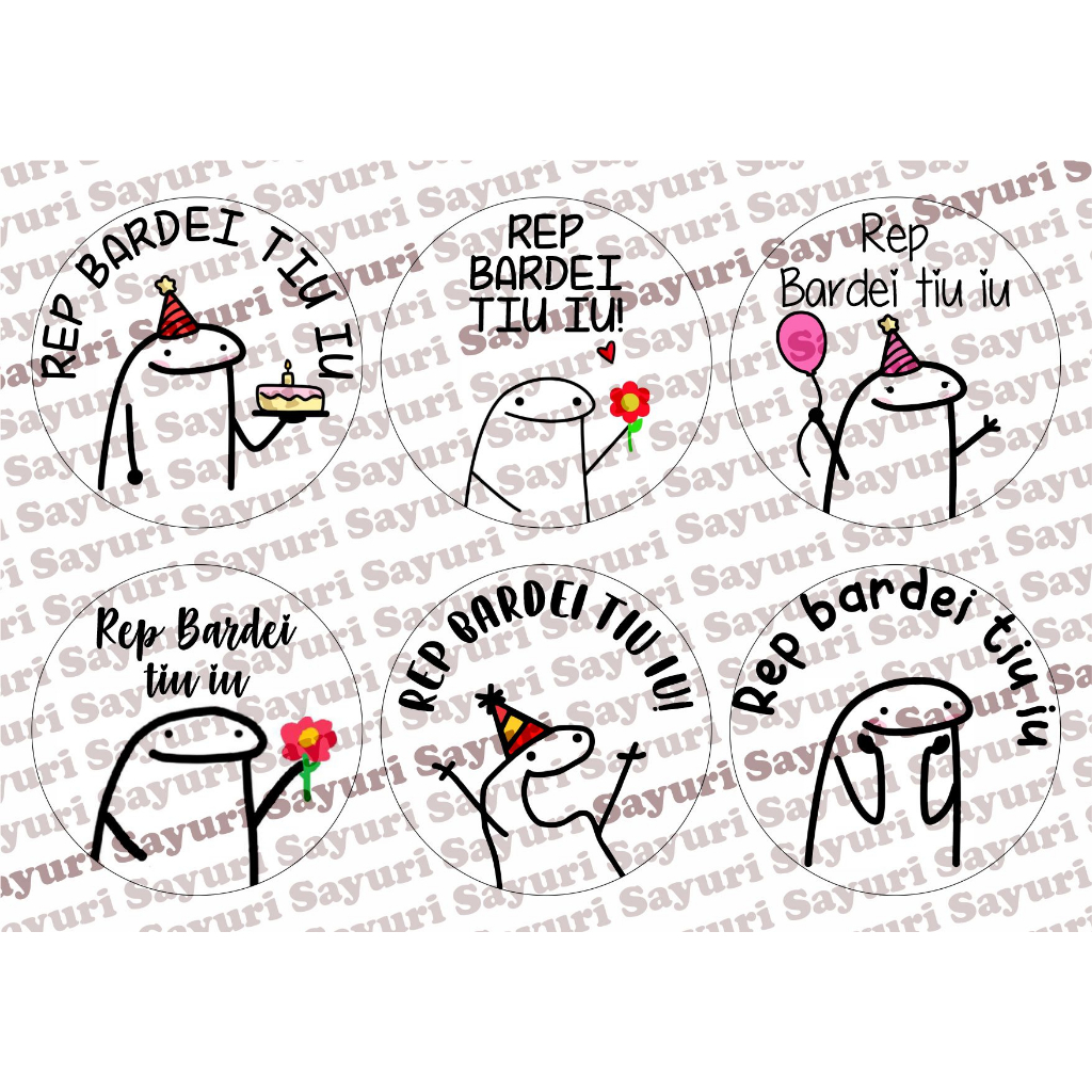 Papel de arroz CORTADO para Bento cake, Mini Bolo, Bolo Marmita com 6 unidades de 9cm do tema Flork Meme