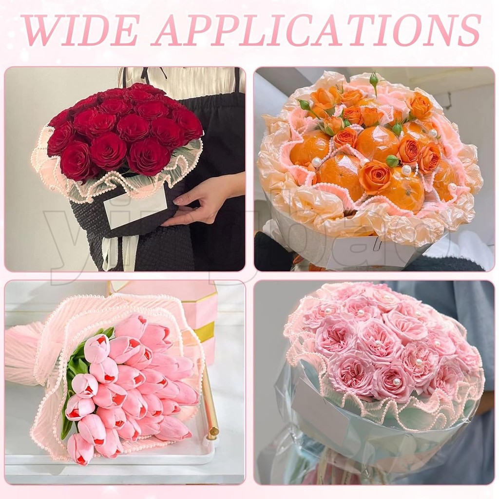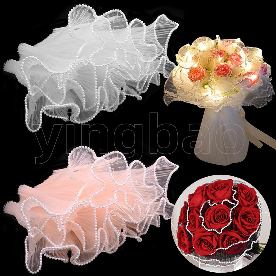Papel De Embrulho De Flores De 4 Jardas , Borda De Pérola , Buquê Malha Floral Para Dia Dos Namorados , Suprimentos Flor