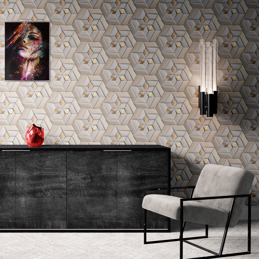 Papel De Parede 3d Dourado Cinza Geometrico Rolo Autocolante 4,00 mts