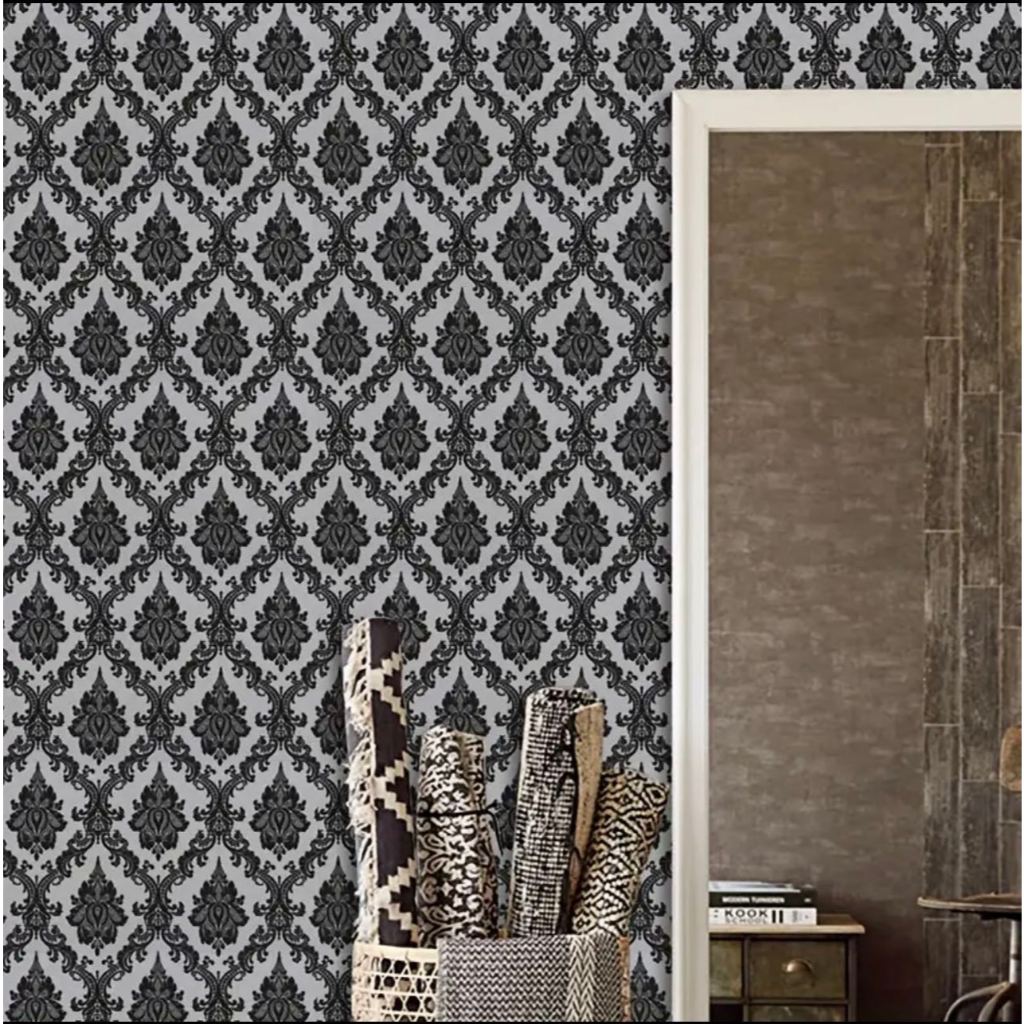 Papel de Parede 3D Flor Preto 5 METROS x 45CM Adesivo Autocolante para Sala, Quarto