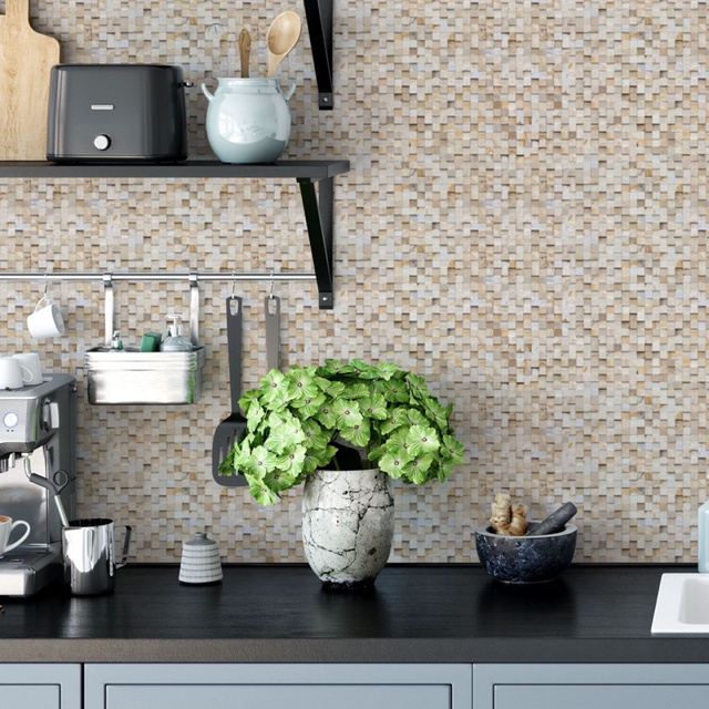 Papel de Parede 3D Pastilha Bege 5 METROS x 45CM Adesivo Autocolante para Sala