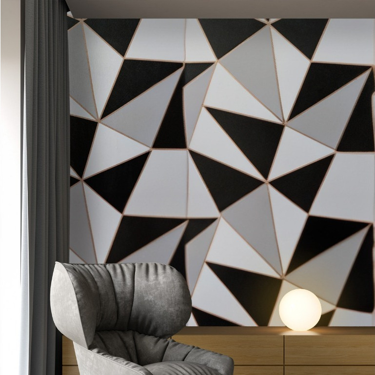 Papel de parede 3D triângulo preto autoadesivo