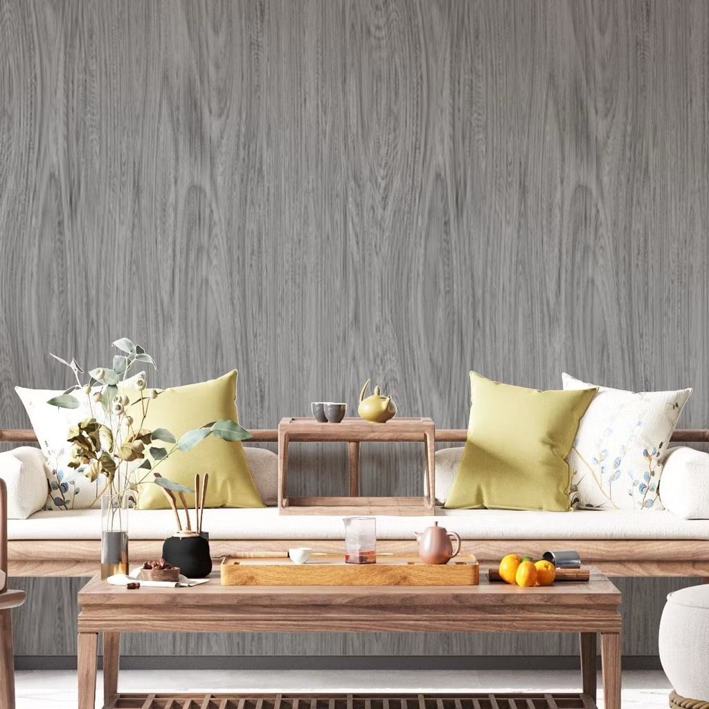 Papel de Parede Adesivo 3D Madeira Cinza Autocolante 5m*45cm P/ Porta Armário Mesa Parede ZH6527-4