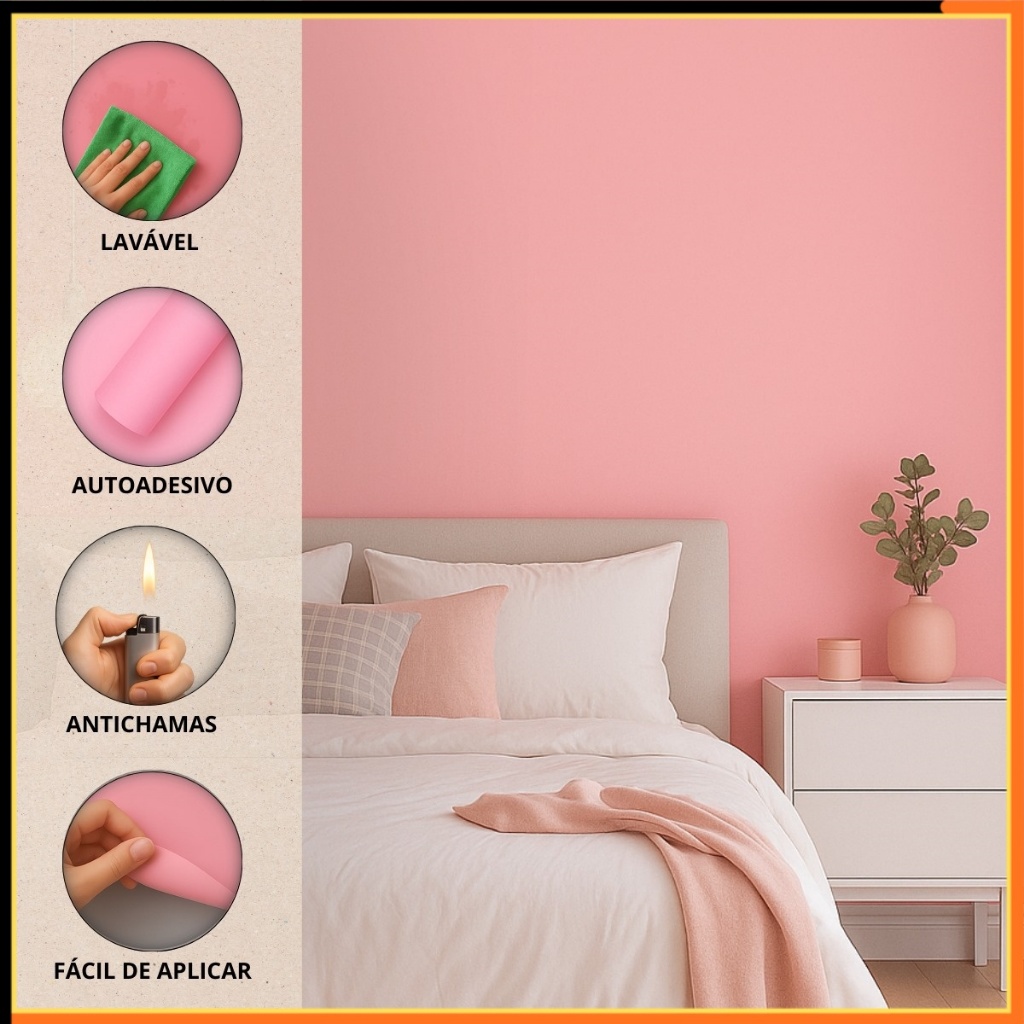 Papel de Parede Adesivo 5 Metros Rosa Fosco Promoção envio Imediato