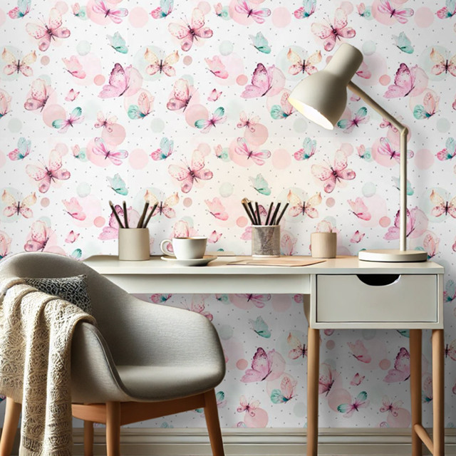 Papel de Parede Adesivo Autocolante Infantil Borboletas Rosa - 5 Metros