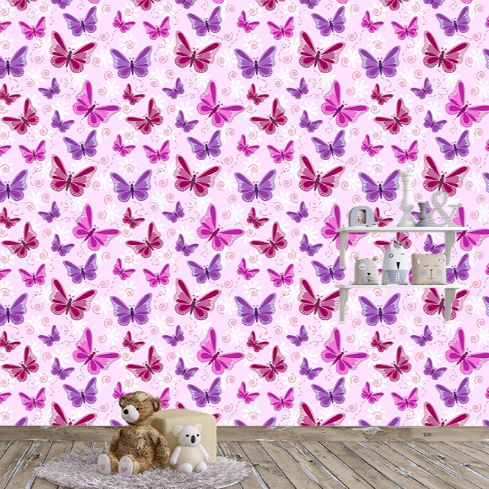 Papel de Parede Adesivo Autocolante Infantil Borboletas Rosas