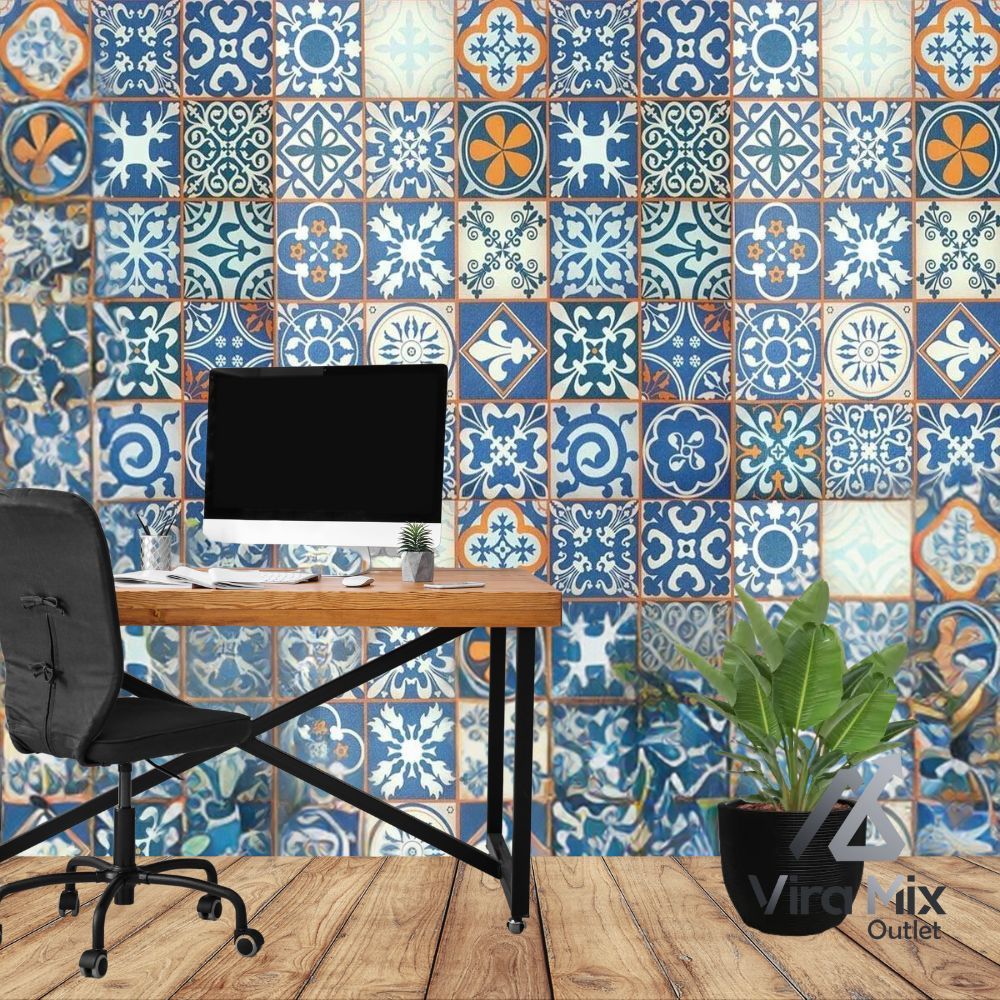 Papel de Parede Adesivo Azulejo Português Autocolante Rolo 5m x 45cm Cozinha Banheiro