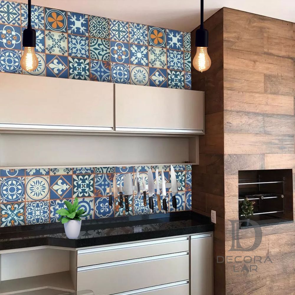 Papel de Parede Adesivo Azulejo Português Autocolante Rolo 5m x 45cm Cozinha Banheiro