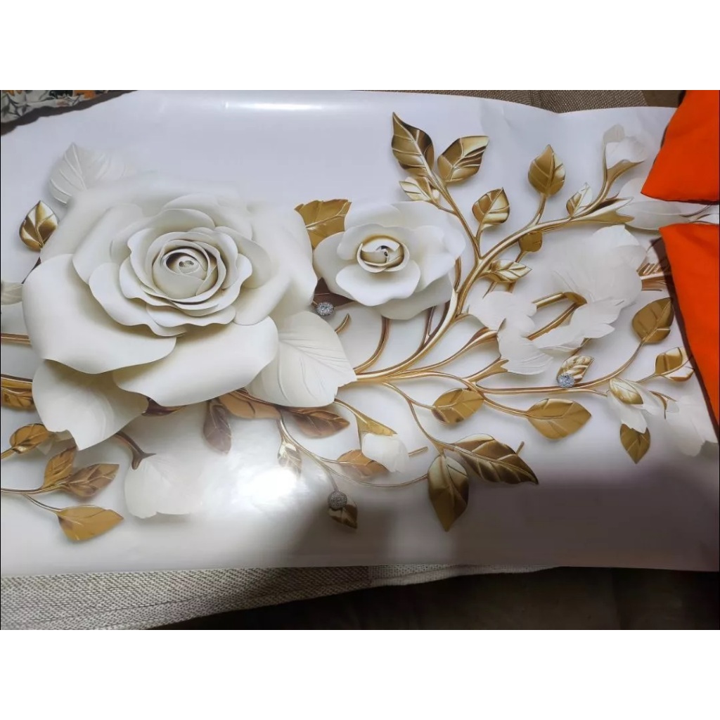 Papel De Parede Adesivo Capitonê Floral DOURADO Autocolante 1m x 58cm